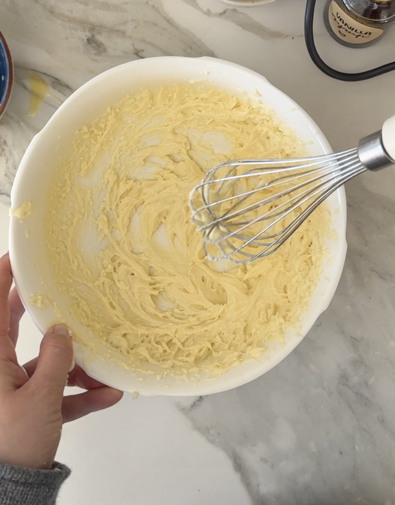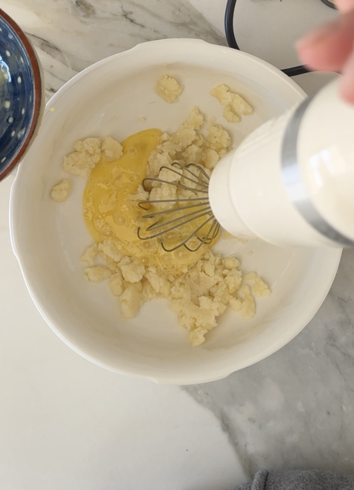 Transfer the dough to a bowl to cool down. Then mix in the eggs previously beaten, little by little.